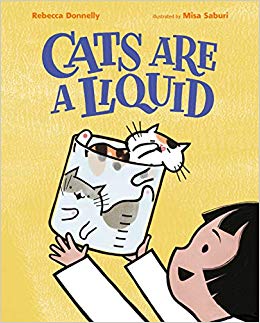 About a week ago, I came across an article about a scientific study that concluded that cats are both liquid and solid. It won an IgNoble Prize, so it was making news. It sounds weird, but it was a fascinating study. Imagine my surprise when this week I came across a picture book inspired by that same study – Cats Are a Liquid by Rebecca Donnelly and illustrated by Misa Saburi!